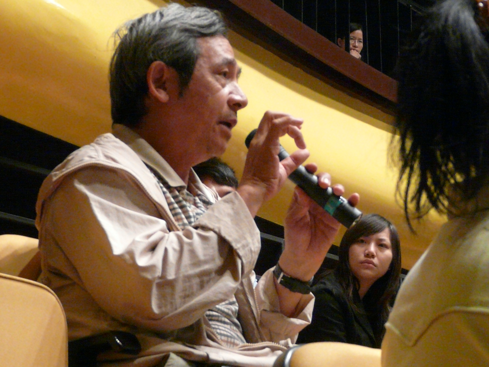 影博館現場出現神秘來賓-邱生鑑,他是第一屆金穗獎得主,當年的作品-耕耘者與收穫者可是用8釐米底片拍攝的喲!他不但二場座談全程參與,還帶了DV拍攝呢!